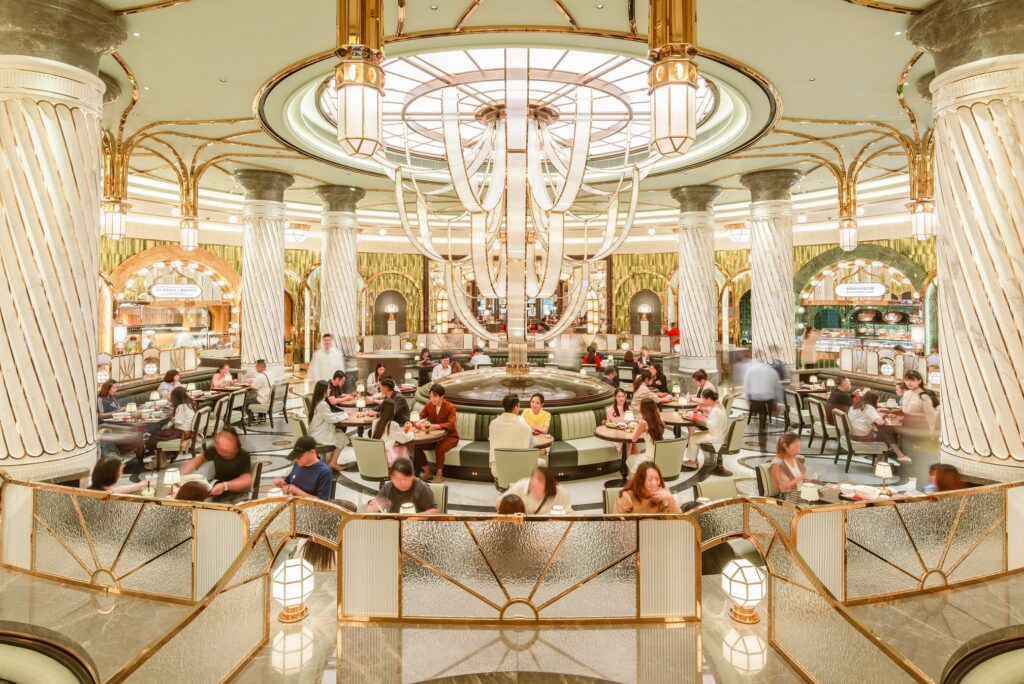 坐落於永利皇宮的馥樂庭是融匯18大頂尖亞洲餐飲品牌與永利精緻美學的超人氣美食地標,得獎設計由永利旗下WynnDesign and Development委託享譽國際頂尖設計工作室David Collins Studio與Lighting Design International聯袂打造。靈感源自歐洲諸多著名市集廣場的美學精髓,從金碧輝煌的拱門到精美繁複的地磚,通過別出心裁的空間設計,生動詮釋充滿歷史底蘊的經典元素,營造出極具感官衝擊力的用餐氛圍。作為國際合作的集大成之作,馥樂庭薈萃了全世界頂尖匠藝——意大利馬賽克百年世家精雕細琢的裝飾拱門,完美還原了歐洲油畫般的逼真質感;捷克波西米亞玻璃千年工藝典範打造的巨型吊燈,如噴泉般在美食廣場璀璨綻放;美國先鋒藝術家獨家設計的鏡面雕塑「Allsphyr」,以扭曲的鏡面為拍照增添無限玩味。在美輪美奐的馥樂庭,每個角落都散發著獨特的藝術氣息和匠心獨運的魅力。這裡不僅是品味非凡的美味殿堂,更是讓人流連忘返的必訪打卡地。