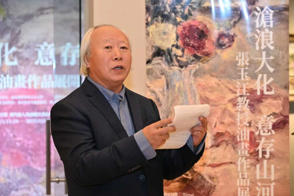 澳門文化界聯合總會理事長、蓮花國際藝術交流協會會長李自松致辭時表示:「滄浪大化 意存山河——張玉江教授油畫作品展」落戶澳門,有著特殊的文化意義。澳門獨特的歷史底蘊造就了“中西合璧、古今交融”的文化特質,而張教授的作品所承載的中華傳統文化基因與現實主義精神,恰好與澳門的文化品格形成了奇妙的呼應與共鳴。此次有幸攜手張玉江教授呈現這場油畫盛宴,既是對先生藝術成就的崇高致敬,亦為澳門與河北的文化交流再添濃墨重彩的一筆。