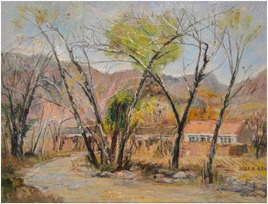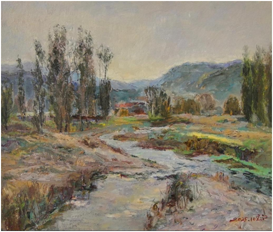 本次展覽集中呈現其「燕山風景」系列等代表性作品,涵蓋東北黑土地、燕山古村落、鄉土靜物等多元題材,以沈郁厚重的色彩、樸華厚重的筆觸,詮釋寫生中創作的藝術理念,既可見現實主義美術的深刻印跡,亦飽含近代中國鄉土美術的人文抒懷。展品中,簡樸房舍、爭艷春華與山間村野的歲月痕跡,既承載著一代人的共同記憶,更傳遞著「為人生而藝術」的初心與溫度。