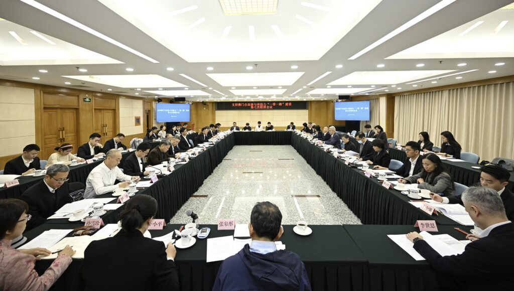 中央港澳辦、外交部、工業和信息化部、商務部、文化和旅遊部、中國人民銀行、海關總署、國務院國資委、金融監管總局、國家中醫藥局、國家藥監局、中央政府駐澳門聯絡辦公室,以及澳門特別行政區政府行政法務司、經濟財政司、社會文化司、運輸工務司、政策研究和區域發展局、經濟及科技發展局、旅遊局、招商投資促進局、澳門金融管理局、警察總局金融情報辦公室、治安警察局、教育及青年發展局、衛生局、藥物監督管理局等有關負責人參加了會議。