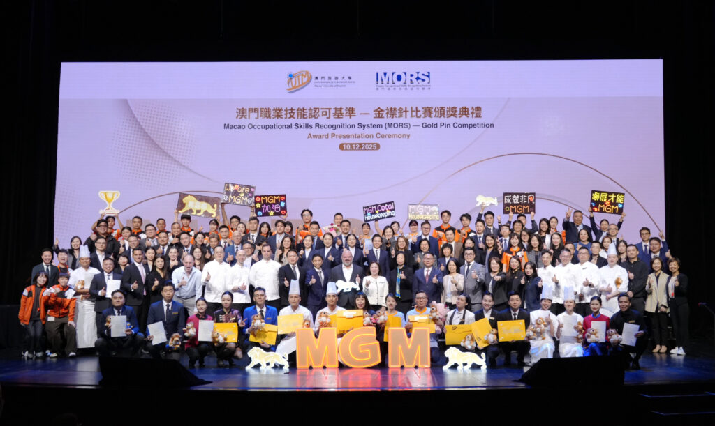 【本報訊】美高梅致力培育旅遊業界人才,透過提升團隊成員的專業技能,壯大旅遊業人才隊伍,助力澳門特區政府促進「1+4」經濟適度多元發展。公司於昨日舉行的「澳門職業技能認可基準(MORS)」2025年度金襟針大賽頒獎典禮上,勇奪10項殊榮,創下歷屆最佳成績,足證公司至臻完美及力求卓越的精神。