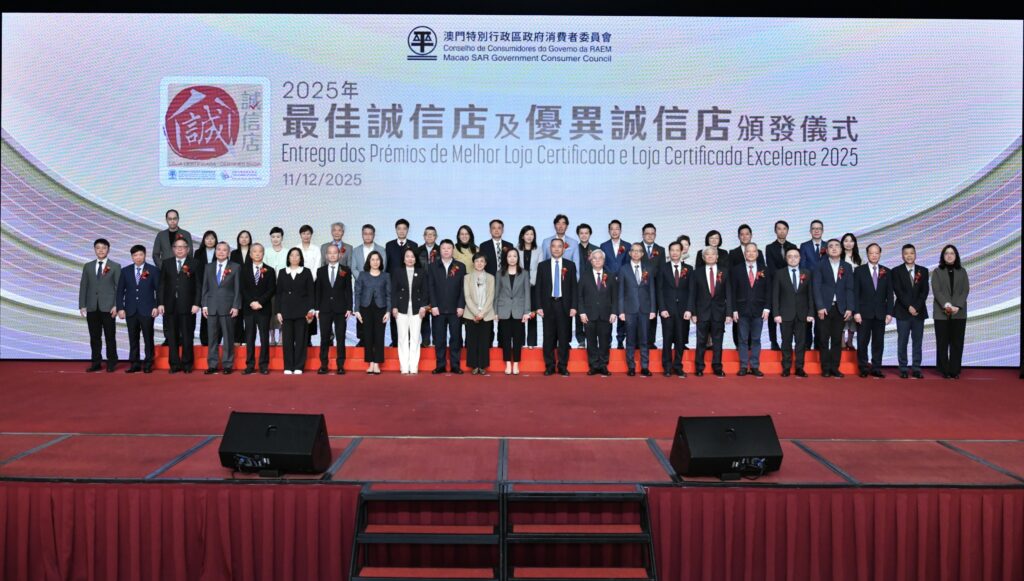 【本報訊】消費者委員會昨(11)日舉行2025年「最佳誠信店」及「優異誠信店」頒發儀式,表揚本澳商號在誠信經營與優質服務的卓越表現,共20間商號獲授2025年「最佳誠信店」榮譽,43間商號獲頒發「星級旅遊服務認可計劃」零售業界別的「星級旅遊服務商戶獎」。儀式上並公佈「誠信店」新標誌式樣,新標誌以「誠印連商•指紋築信」為主題。