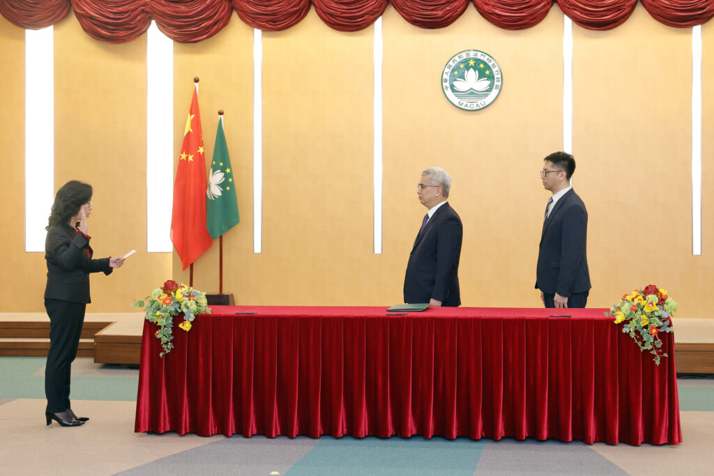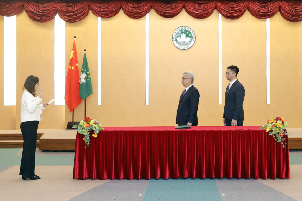 【本報訊】行政法務司司長黃少澤昨(17)日早上在政府總部多功能廳,主持身份證明局局長陳海帆和法律及司法培訓中心主任羅翩卿的就職儀式,黃司長充分肯定兩人具備豐富管理經驗與優秀領導才能,展現大局意識和執行能力,堅信兩人能帶領團隊開拓創新,全力推進公共行政改革,實現第六屆特區政府「提升特區治理效能」的施政目標。
