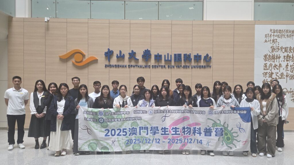 【本報訊】為推動本澳青年對生命科學的認識,提高對該學科的興趣,澳門生命科學學會主辦,暨大生科院澳門同學會、暨大生科院協辦和支持之「二○二五澳門學生生物科普營」,已於十二月一二日至十四日在廣州暨南大學舉行。科普營由會長吳許文擔任團長,理事長洪亦恆、秘書長徐健成、理事王丹妮、暨大生科院澳門同學理事長會陳慧傑任團領隊。另特邀澳門大學中華醫藥研究院鍾昌明助理教授、澳門大學健康科學學院艾娜娜博士後研究員、澳門城市大學應用心理學梁啟昇博士任團顧問,適時幫學生解惑專業知識及相關未來發展。本次活動共吸引來自本澳十四所學校近五十名學生報名,最終挑選二十六位高中學生參加。