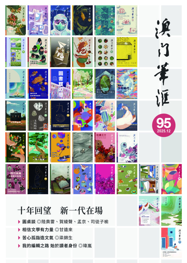 【本報訊】由澳門筆會出版的文學雜誌《澳門筆匯》第九十五期已正式出版。本期以「十年回望,新一代在場」為專題,邀請十位活躍於澳門文學場域的編輯與文學活動策劃者,從以《澳門筆匯》改版十周年為出發點,討論當下的澳門文學發展。