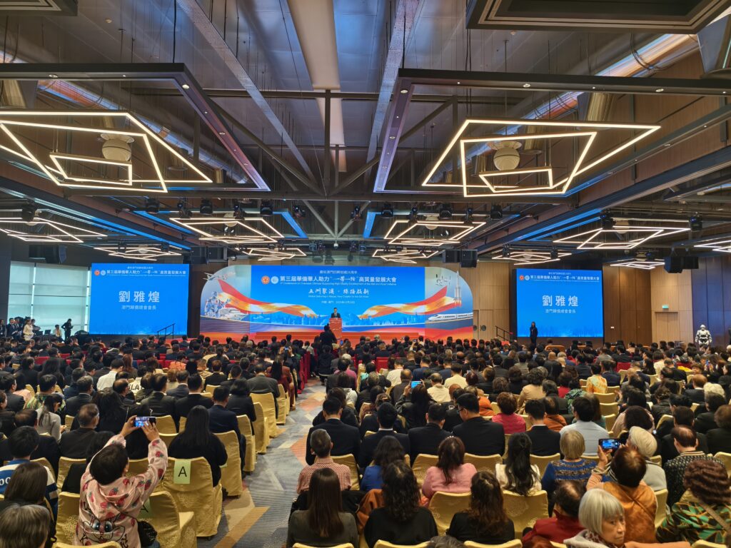 經濟財政司司長戴建業致辭時期望本次大會能進一步凝聚僑心、匯聚僑智、發揮僑力,並讓更多僑界朋友親身感受澳門以至粵港澳大灣區的活力,將「澳門平台」轉化為全球機遇,共同參與「一帶一路」高質量發展,為構建人類命運共同體作出新的更大貢獻。