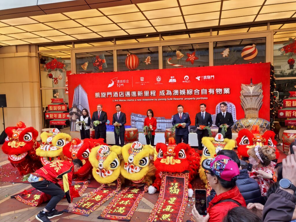 【本報訊】澳娛綜合度假股份有限公司(「澳娛綜合」)昨日下午於凱旋門酒店舉行慶祝儀式,標誌凱旋門酒店正式成為澳娛綜合自有物業組合的新成員,象徵其邁進發展新階段。同時,澳娛綜合亦藉慶祝活動與賓客、市民及旅客共迎新禧,以寓意吉祥的醒獅旗鼓匯演為澳門半島帶來更多繽紛活力。