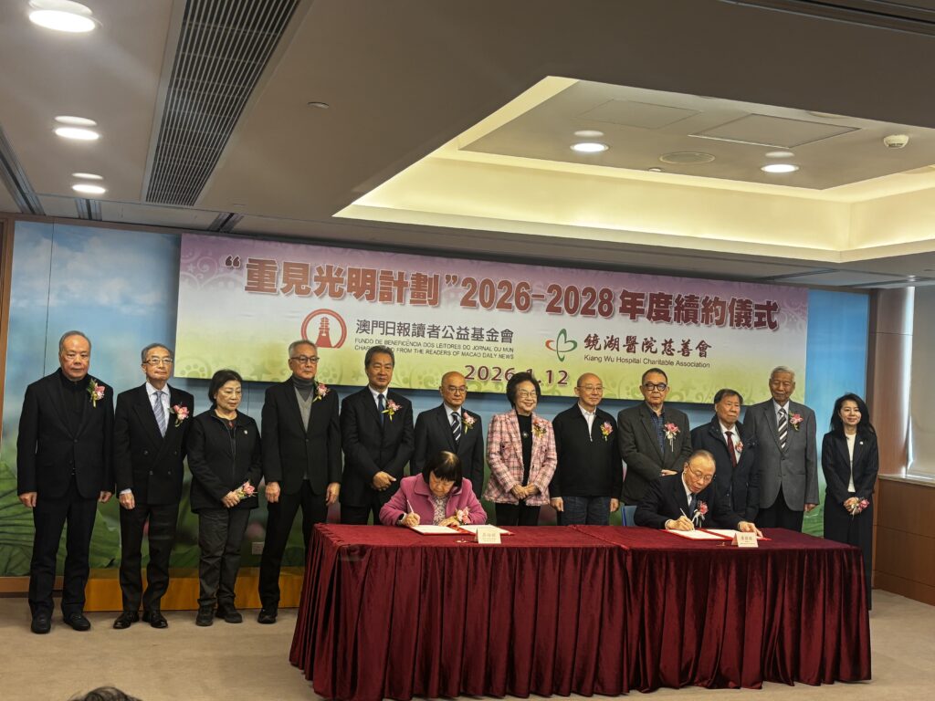 【本報訊】鏡湖醫院慈善會和讀者公益基金會昨日舉行「重見光明計劃」2026年至2028年度續約儀式,標誌著雙方持續三十一年的慈善合作邁入新階段。根據協議,未來三年公益基金會將每年撥款180萬元,聯同鏡湖醫院慈善會的配套支援,由鏡湖醫院提供先進眼科技術,為合資格的本澳眼疾患者提供手術及治療。