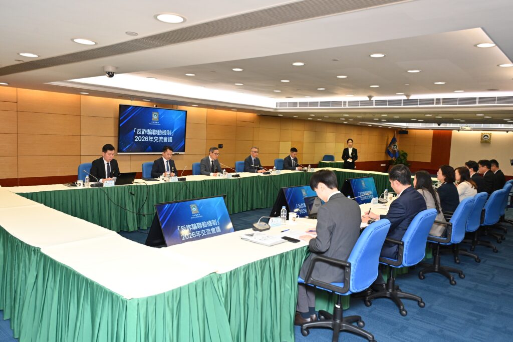 【本報訊】司法警察局聯同郵電局、金融管理局於日前召開「反詐騙聯動機制2026年交流會議」,檢視及完善現有合作機制,並就推動全新防治方案進行深入交流,攜手預防和打擊電訊網絡詐騙犯罪。