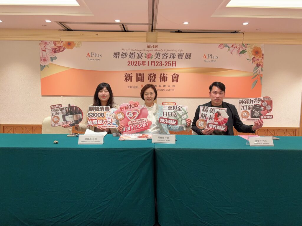 【本報訊】由藝嘉國際有限公司主辦的「第54屆婚紗婚宴美容珠寶展」,將於2026年1月23日至25日假澳門漁人碼頭會議展覽中心盛大舉行。本屆展會匯聚澳門、香港及臺灣數十家婚慶品牌,圍繞「一站式婚禮資源整合」核心,打造婚紗攝影、星級婚宴、珠寶首飾等主題專區,為準新人提供多元化籌備方案,進一步推動澳門婚慶產業與旅遊經濟的融合發展。