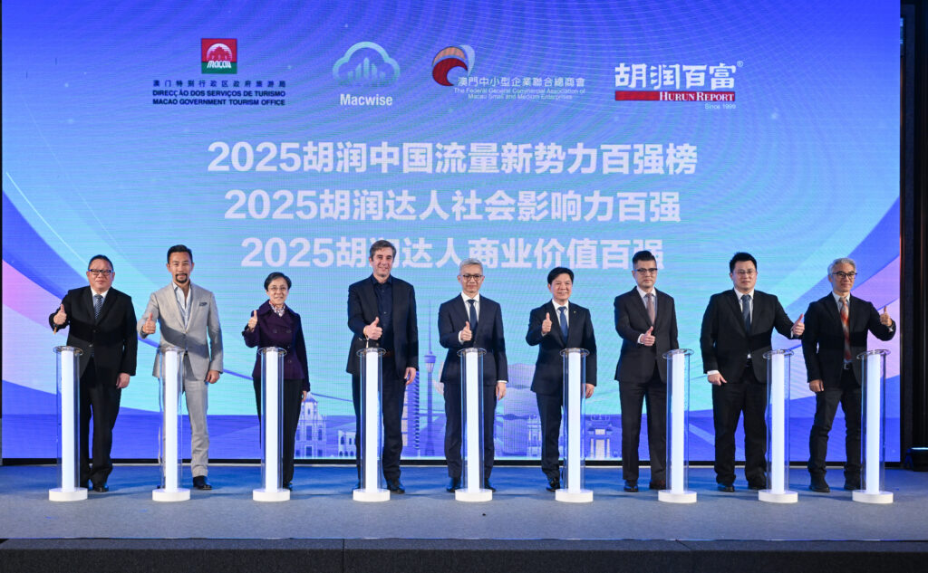 【本報訊】由澳智通科技有限公司及澳門中小型企業聯合總商會聯同胡潤研究院攜手合辦的「2026胡潤中國流量新勢力澳門盛典」,昨日假澳門美獅美高梅宴會廳舉行。活動發佈了《2025胡潤中國流量新勢力百強榜》、《2025胡潤達人社會影響力百強》、《2025胡潤達人商業價值百強》三大權威榜單,亦是胡潤榜單首度在澳門揭曉。