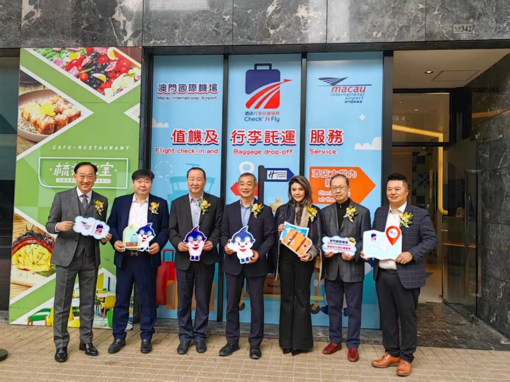澳門國際機場昨日上午分別在新口岸智選假日酒店及澳門皇冠假日酒店大堂舉行酒店行李託運服務啟動儀式,並介紹酒店行李託運服務相關設施,以及營運安排。澳門國際機場專營股份有限公司執行委員會主席陳穎雄,澳門航空股份有限公司董事會主席兼執行委員會主席兼總經理吳立新,明捷澳門機場服務有限公司總經理巴安娜,澳門國際機場專營股份有限公司執行董事朱丹寧、李時泰,澳門新口岸智選假日酒店總經理鍾友雄,澳門皇冠假日酒店市場銷售副總監吳維彬,澳門國際機場專營股份有限公司市場部總監方曉健等出席。