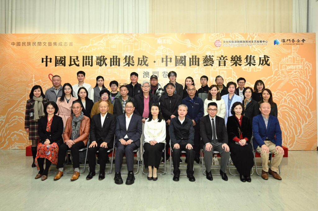 【本報訊】澳門基金會與文化和旅遊部民族民間文藝發展中心於昨日下午六時三十分在澳門教科文中心舉行《中國民間歌曲集成‧澳門卷》(戴定澄團隊編纂)及《中國曲藝音樂集成‧澳門卷》(沈秉和團隊編纂)兩卷志書發佈會。主禮嘉賓包括中聯辦宣傳文體部副部長白冰、「中心」主任蘭靜、澳門基金會行政委員會主席吳志良、文化局文化創意產業促進廳廳長何鴻斌、澳門文化界聯合總會副會長郭敬文,以及評審代表穆欣欣、吳衛鳴等,還有兩卷編委會成員戴定澄、關瑾華與編纂團隊代表,連同各界,如文化社團、圖書館代表等近八十人出席。