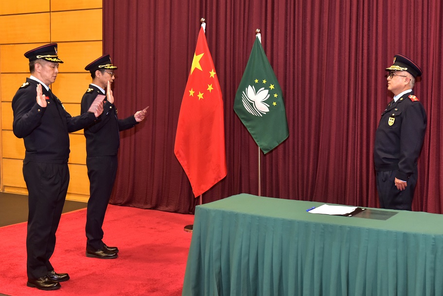 【本報訊】消防局昨日下午在總部暨西灣湖行動站舉行消防局澳門行動廳廳長及海島行動廳廳長就職儀式,儀式由消防局局長王健主持,並在副局長張智宏、代副局長李龍傑及各部門主管的見證下,陳明德及吳家偉完成宣誓及簽署就職狀,分別就任為消防局澳門行動廳廳長及海島行動廳廳長。