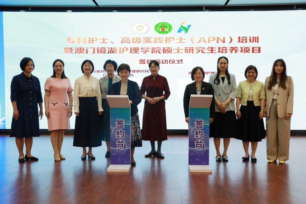 【本報訊】為貫徹國家「十五五」規劃要求及《粵港澳大灣區發展規劃綱要》,積極響應「塑造健康灣區」戰略部署,澳門鏡湖護理學院與廣東省護理學會、廣東省嶺南南丁格爾護理研究院,於二0二六年四月十日在穗舉行之第十三屆高水平專科護理實踐大會暨專科護士科技周活動開幕式上舉行合作備忘錄簽署儀式。此次合作旨在深化粵澳兩地護理專業的實質性交流,並透過資源共享與優勢互補,共同應對大灣區醫療衛生事業發展帶來的機遇與挑戰。
