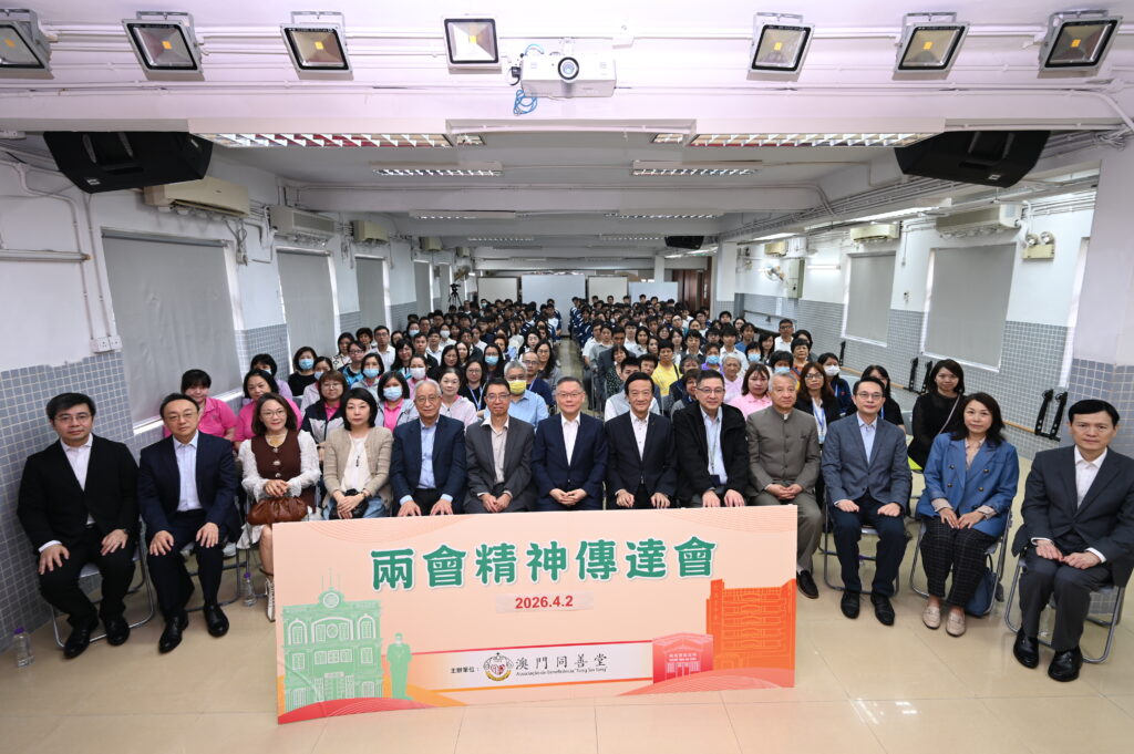 【本報訊】同善堂日前舉辦「兩會精神傳達會」,由澳區全國人大代表、同善堂值理會副主席劉藝良,全國政協委員、同善堂值理會值理王世民任主講嘉賓,與會者包括該堂主席崔世平、副主席馬有友、黃焯華,值理陸永根、李傑興、黃珮琳、李俊鳴、莊麗晶、姚明禮、潘慧君等,聯同現場及線上超過900名師生、同善堂長者活動中心會員以及各單位員工共同參與。