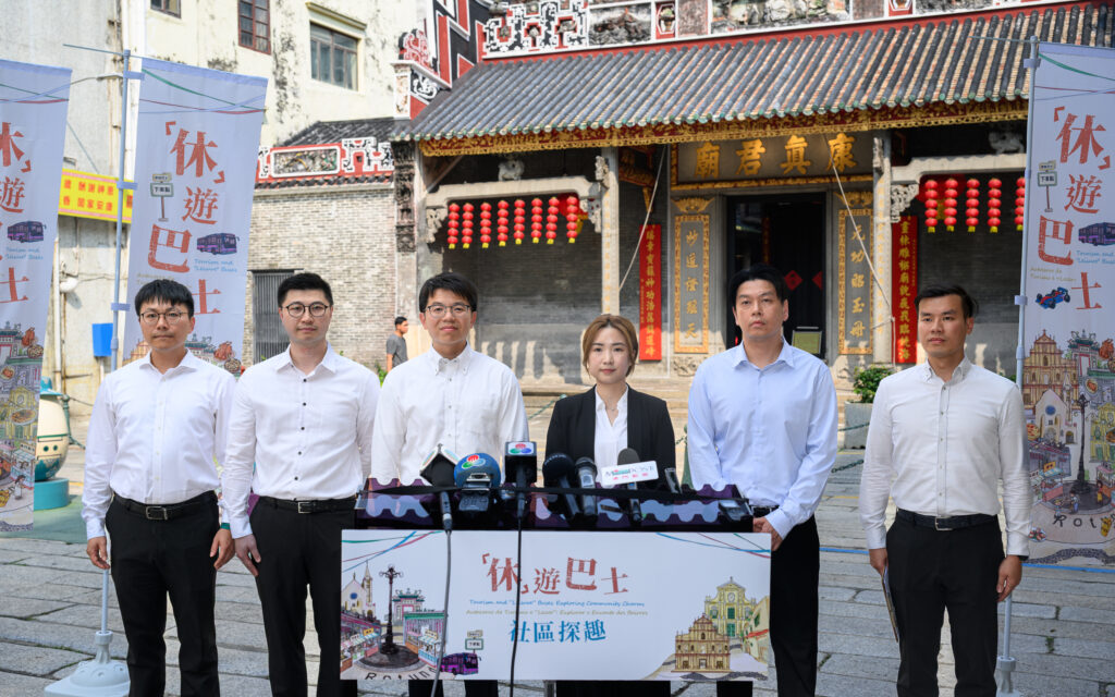 【本報訊】為促進社區經濟發展及社區中小企拓流引客,特區政府協同六大綜合度假休閒企業推出《「休」遊巴士·社區探趣》,經科局、旅遊局、博監局、交通局、治安警察局及市政署昨日下午在康公廟前地舉行聯合新聞發佈會。