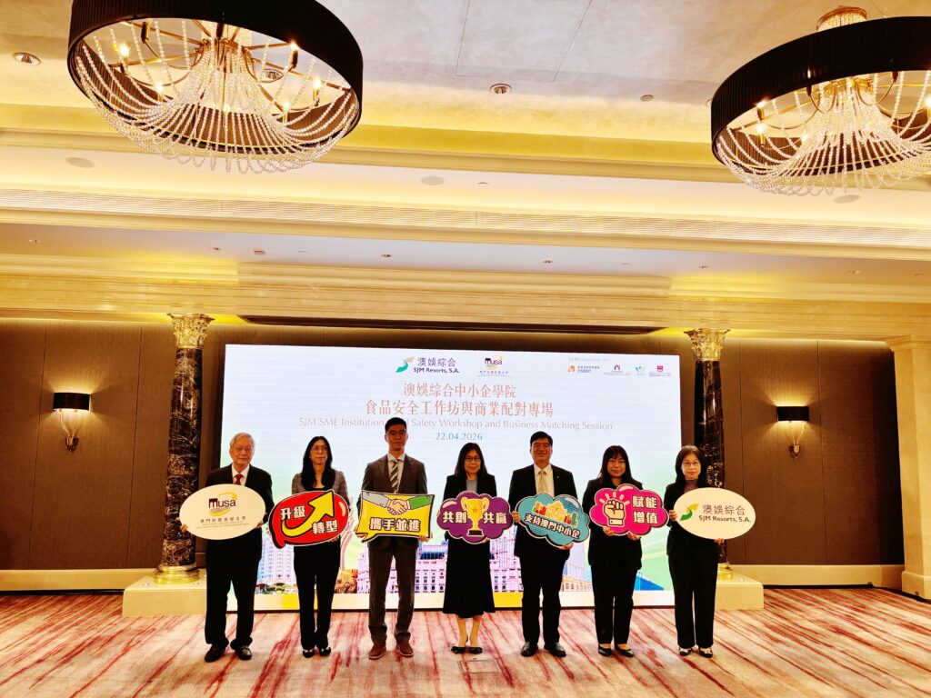 【本報訊】澳娛綜合度假股份有限公司聯同澳門供應商聯合會,於昨日下午假澳門上葡京綜合度假村合辦「澳娛綜合中小企學院食品安全工作坊與商業配對專場」。活動獲澳門特別行政區政府經濟及科技發展局、招商投資促進局、市政署及旅遊局鼎力支持,吸引55家本地中小企業逾80人踴躍參與,旨在透過食品安全講座、產品展示及一對一商業配對,協助中小微企提升專業能力,推動行業升級轉型,共拓合作商機。