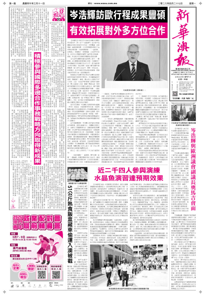 岑浩輝訪歐行程成果豐碩 有效拓展對外多方位合作