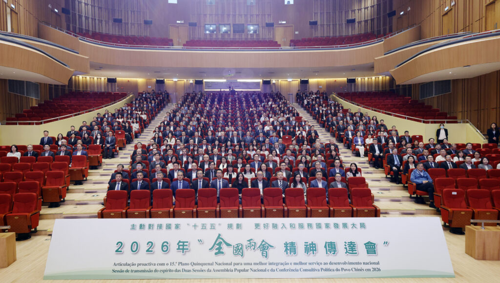 【本報訊】為深入學習貫徹2026年全國兩會精神,準確把握國家「十五五」規劃綱要的戰略部署,特區政府昨日下午於澳門大學會堂舉辦2026年全國兩會精神傳達會,由行政法務司司長黃少澤、中央政府駐澳門聯絡辦公室副主任張應杰、澳區全國人大代表團團長劉藝良及全國政協常委何潤生作專題分享,約450名特區政府領導及主管官員出席。