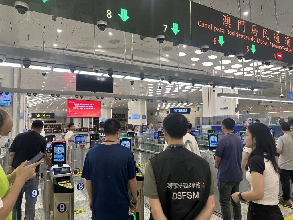 另一方面,澳門保安部隊事務局持續研究先進生物特徵查驗技術。2023年10月虹膜通關措施正式落地,並陸續於關閘、港珠澳大橋(港澳大廳)、內港碼頭、外港碼頭、氹仔碼頭及澳門國際機場六個口岸設置了合共81條「虹膜自助通道」供澳門居民使用。2025年6月11日,適用對象擴展至香港永久性居民。同年再新增合共71條第二代「虹膜自助通道」,目前共有152條「虹膜自助通道」在上述六個口岸提供服務。後續,本局將持續檢視使用情況,並聯同治安警察局共同研究擴展適用對象,例如外地僱員、外地學生等長期在澳逗留人士。